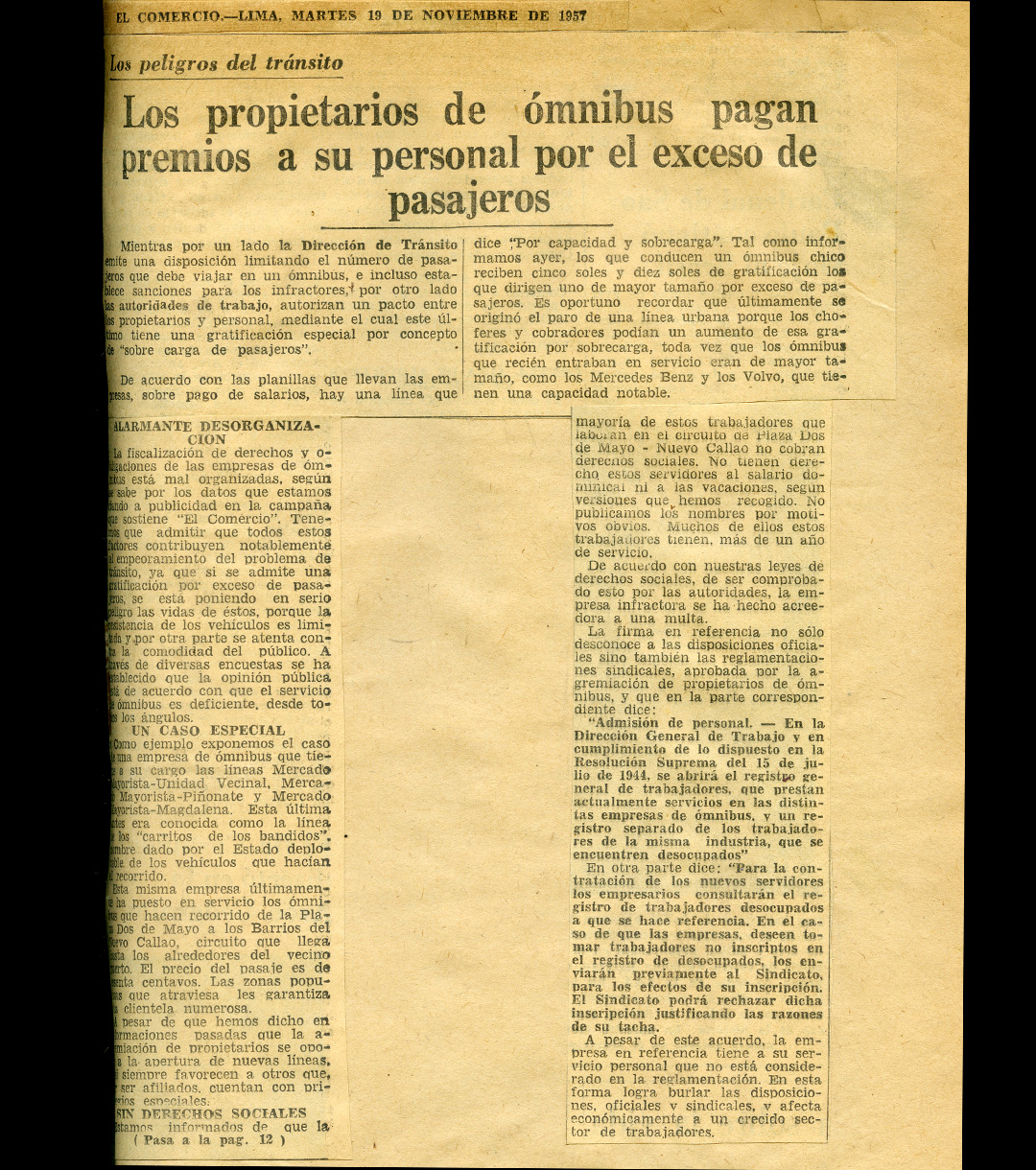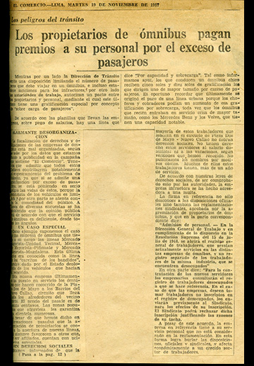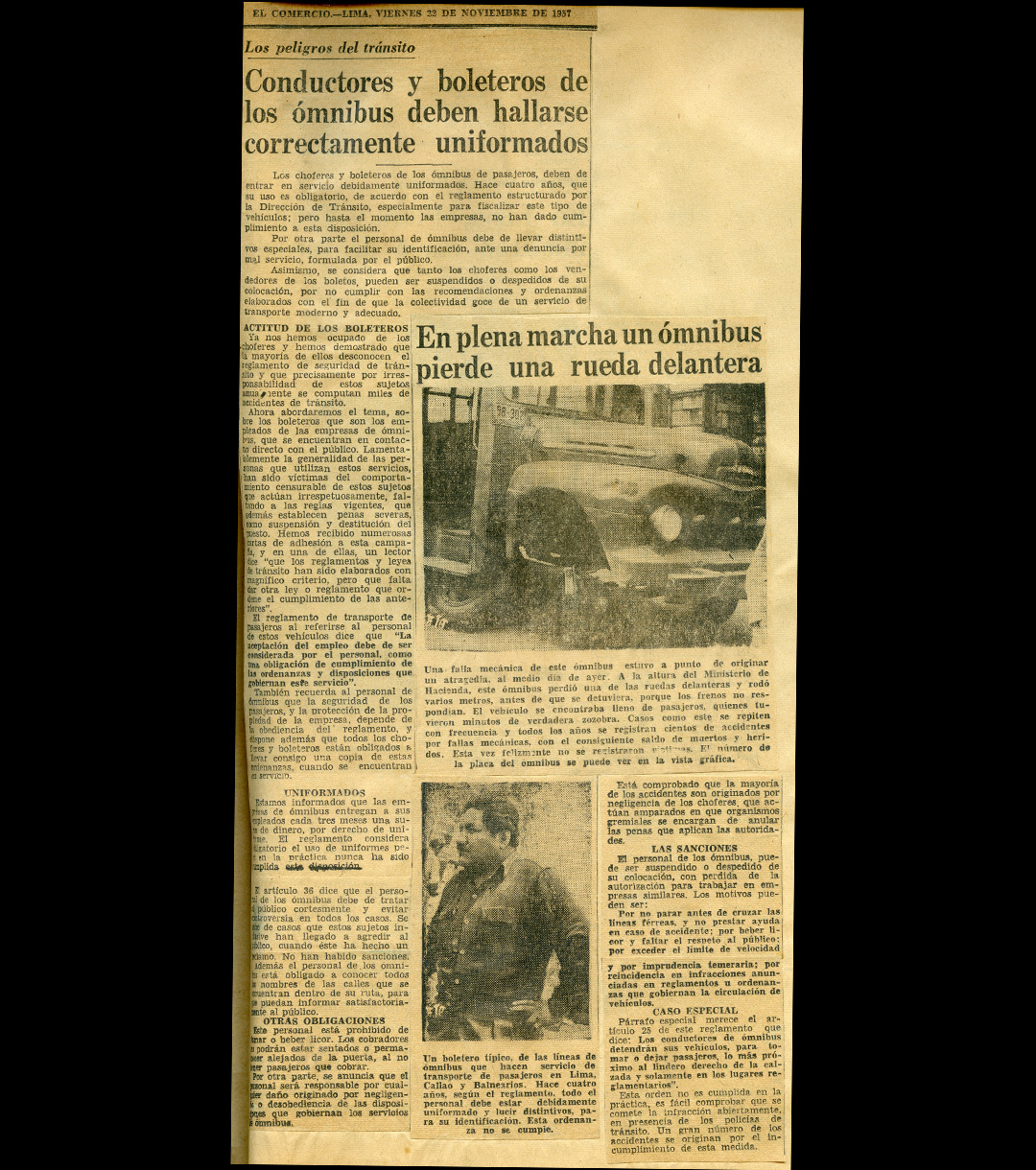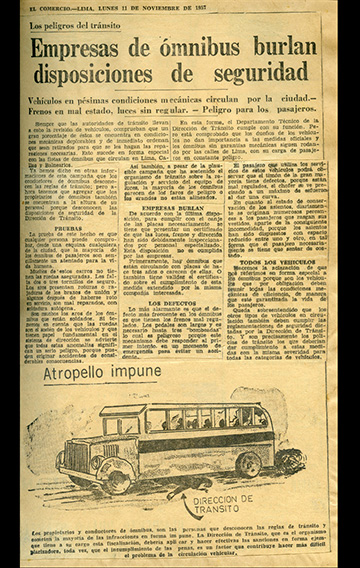 Pero reglamento se hizo letra muerta. En 1957, El Comercio lanzó una campaña llamada “Los peligros del tránsito” para denunciar a los principales infractores. Al revisar esos 73 informes y al compararlos con los 330 que hemos publicado en  #NoTePases, llegamos a la conclusión de que no hemos cambiado nada. Son los mismos problemas y los mismos protagonistas. Revise usted mismo nuestro pasado irresuelto.